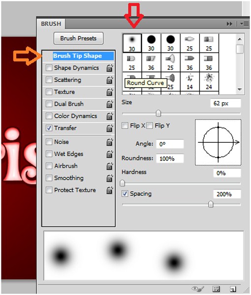 Do not forget to fix the distance to 4 pixels and the size to 15 pixels. Leave the choke at zero.