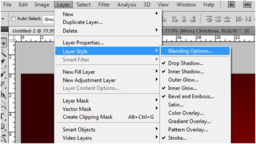 Now go to Layer > Layer Style > then click on the Blending options.